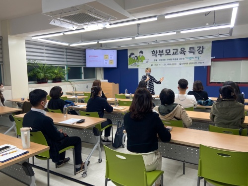 -일시: 2022. 11. 11.(금) -장소: 신정여자중학교 -내용: 학부모 교육 -강사: 박자양 센터장(강서교육복지센터)