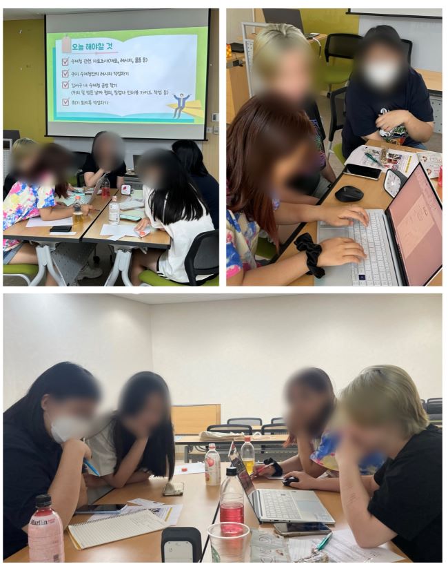 -일시: 2023.08.03 (목) 10:30~13:00 -장소: 강서평생학습관 1층 제 1강의실 -참석자: 강서 청소년 샌드박스 구띠 동아리 참여 학생 5명, 지도교사 1명 -내용: 구띠 동아리 사업 안내 및 전체 OT, 수제청 개발 자료조사 및 수제청 공방 탐방 협조 요청