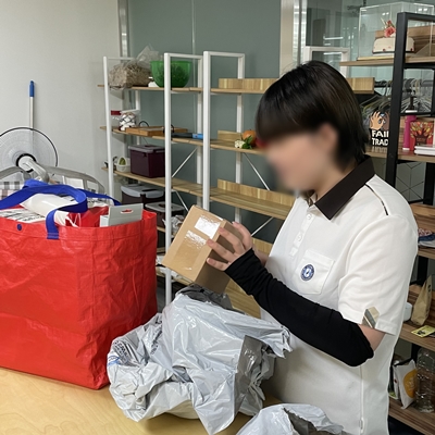 띵동! 제품 개발 물품들이 도착했어요! 구매한 물품과 수량은 맞는지, 물품에 하자는 없는지 검수하고~ 검수 완료된 조리 도구는 세척합니다!
