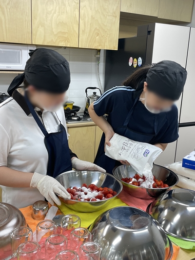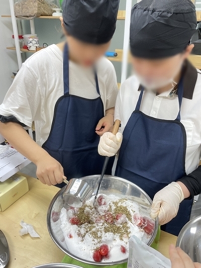 샌드박스 구띠 동아리 - 수제청 창업 프로그램(4회차) 일시: 2023.8.28(월) 15:00~21:00 장소: 종해문화마을협력소 참석자: 구띠 동아리 참여학생 4명, 지도교사 1명 내용: 수제청 1차 개발 활동