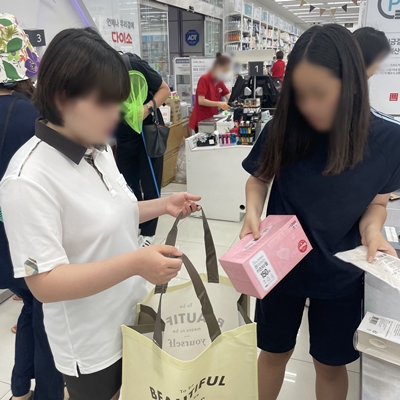 구띠 친구들이 직접 마트에 방문하여 상품 상태를 눈으로 확인하고 가격 비교하면서 추가 물품을 구매하고 왔어요~