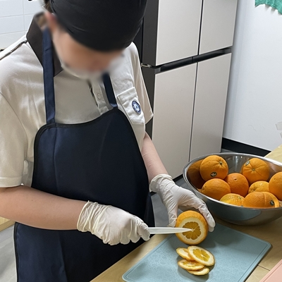 구띠만의 레시피에 맞게 오렌지 손질을 하고~ 텁텁한 맛을 없애기 위해 껍질을 모두 제거하는 과정을 가졌습니다. 맛있는 수제청 개발에 진심인 구띠 친구들 ^ㅁ^