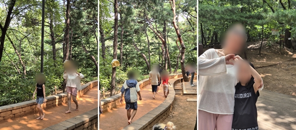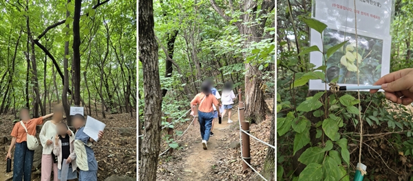 다음으로는 에코티어링 활동을 했습니다. 가족별로 팀을 이루어 우장산을 산책하며 지도에 있는 미션을 완수하고 "숲 속에 이런 것도 있었어?" 하며 신비한 자연 관찰도 했어요